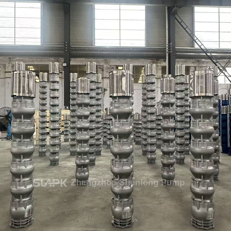 दोनों ऊर्ध्वाधर और क्षैतिज पनडुब्बी प्रतिष्ठानों के लिए डिज़ाइन किया गया, SLAPK QJH Submersible Ocean Water Pump बहुमुखी और अनुप्रयोगों की एक विस्तृत श्रृंखला के लिए अनुकूल है।It is commonly used in seawater desalination plants यह आम तौर पर समुद्र के पानी के जल के जल निकासी संयंत्रों में उपयोग किया जाता हैइसकी शक्तिशाली 110kw मोटर कुशल पम्पिंग क्षमता सुनिश्चित करती है,जो कि कठोर वातावरण में समुद्री या खारे पानी की बड़ी मात्रा को संभालने के लिए महत्वपूर्ण है.